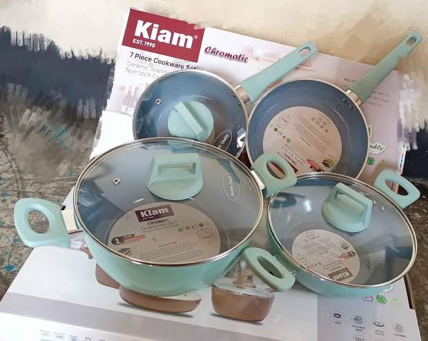 Introducing the Kiam 7 Piece Ceramic Granite Non Stick Cookware Set with an induction bottom. This set includes 7 essential pieces, all made of durable aluminium with a ceramic granite non-stick coating. The induction bottom ensures compatibility with various cooktops, while the ergonomic design and easy-to-clean surface make cooking a breeze. Whether you're a seasoned chef or a beginner in the kitchen, this cookware set offers versatility and convenience for everyday cooking needs.Product details of Kiam Non Stick 7 Pcs Cookware Set For Superior Release -1Pc Casserol, 1Pc Fry pan, 1Pc Karai and 1Pc Milk pan with 3 lids Brand Name: Kiam Quantity: 7 Pcs in this Set Set Cookware: 24CM - 1pc Milk pan: 18CM - 1pc Pan: 22CM - 1pc Fry pan: 24CM - 1pc Lid: 3pcs Strong handle and can resist fire Material: 100% aluminum made body Non-stick coating what save 60% of your oil, ghee, and butter Here we present you the best quality non-stick cooking set that is made up of high gauge aluminum material and coated with non-stick material. For excellent performance when cooking, the Non-Stick Cookware offers all-round value with smooth and even heating both on gas and electric and